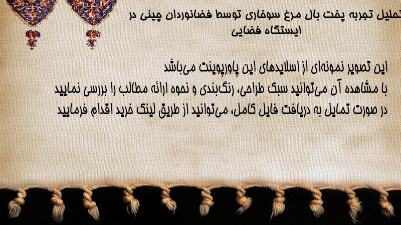 پاورپوینت کامل تحلیل تجربه پخت بال مرغ سوخاری توسط فضانوردان چینی در ایستگاه فضایی