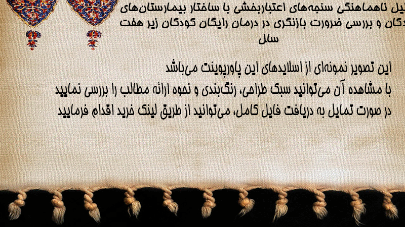 پاورپوینت کامل تحلیل ناهماهنگی سنجههای اعتباربخشی با ساختار بیمارستانهای کودکان و بررسی ضرورت بازنگری در درمان رایگان کودکان زیر هفت سال