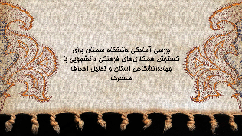پاورپوینت کامل بررسی آمادگی دانشگاه سمنان برای گسترش همکاریهای فرهنگی دانشجویی با جهاددانشگاهی استان و تحلیل اهداف مشترک