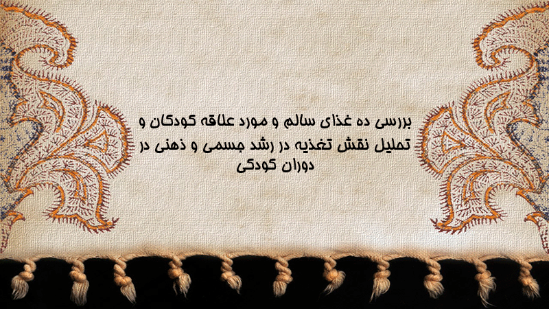 پاورپوینت کامل بررسی ده غذای سالم و مورد علاقه کودکان و تحلیل نقش تغذیه در رشد جسمی و ذهنی در دوران کودکی