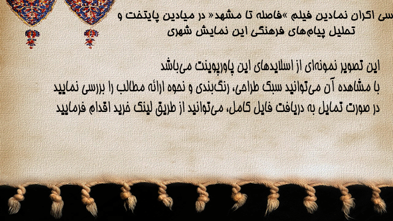 پاورپوینت کامل بررسی اکران نمادین فیلم «فاصله تا مشهد» در میادین پایتخت و تحلیل پیامهای فرهنگی این نمایش شهری