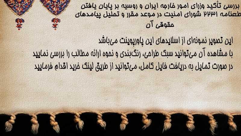 پاورپوینت کامل بررسی تأکید وزرای امور خارجه ایران و روسیه بر پایان یافتن قطعنامه ۲۲۳۱ شورای امنیت در موعد مقرر و تحلیل پیامدهای حقوقی آن
