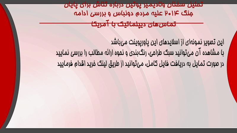 پاورپوینت کامل تحلیل سخنان ولادیمیر پوتین درباره تلاش برای پایان جنگ ۲۰۱۴ علیه مردم دونباس و بررسی ادامه تماسهای دیپلماتیک با آمریکا