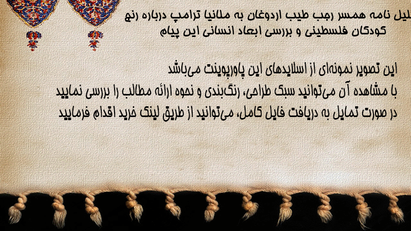 پاورپوینت کامل تحلیل نامه همسر رجب طیب اردوغان به ملانیا ترامپ درباره رنج کودکان فلسطینی و بررسی ابعاد انسانی این پیام