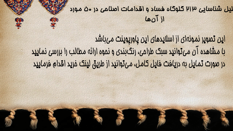 پاورپوینت کامل تحلیل شناسایی ۲۱۳ گلوگاه فساد و اقدامات اصلاحی در ۵۰ مورد از آنها