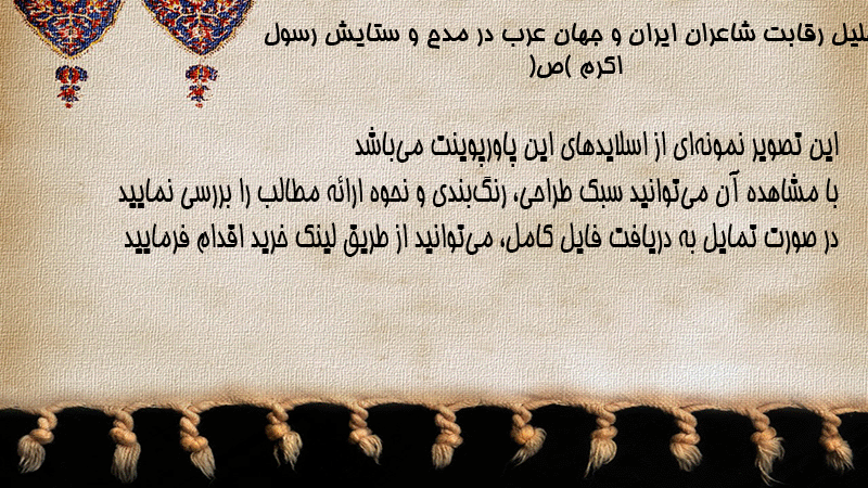 پاورپوینت کامل تحلیل رقابت شاعران ایران و جهان عرب در مدح و ستایش رسول اکرم (ص)