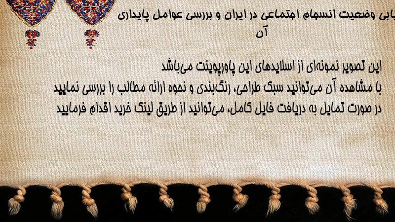 پاورپوینت کامل ارزیابی وضعیت انسجام اجتماعی در ایران و بررسی عوامل پایداری آن