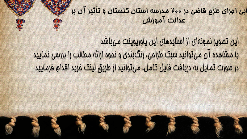 پاورپوینت کامل ارزیابی اجرای طرح قاضی در ۲۰۰ مدرسه استان گلستان و تأثیر آن بر عدالت آموزشی