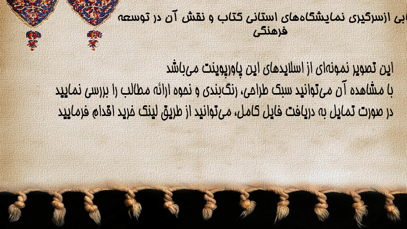 پاورپوینت کامل ارزیابی ازسرگیری نمایشگاههای استانی کتاب و نقش آن در توسعه فرهنگی
