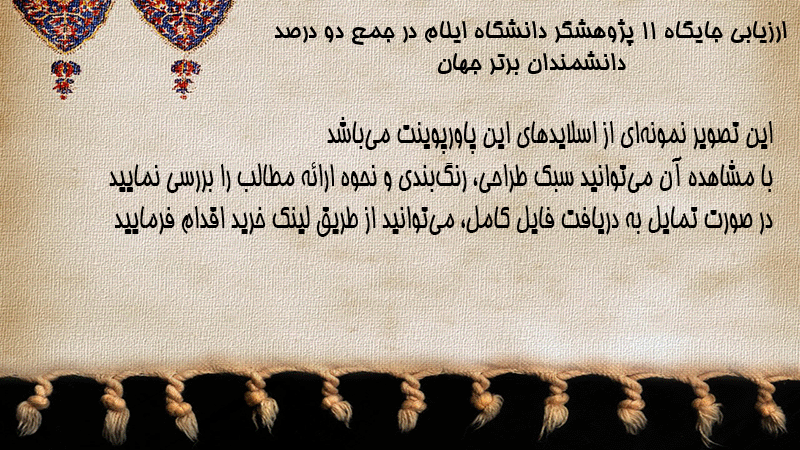 پاورپوینت کامل ارزیابی جایگاه ۱۱ پژوهشگر دانشگاه ایلام در جمع دو درصد دانشمندان برتر جهان