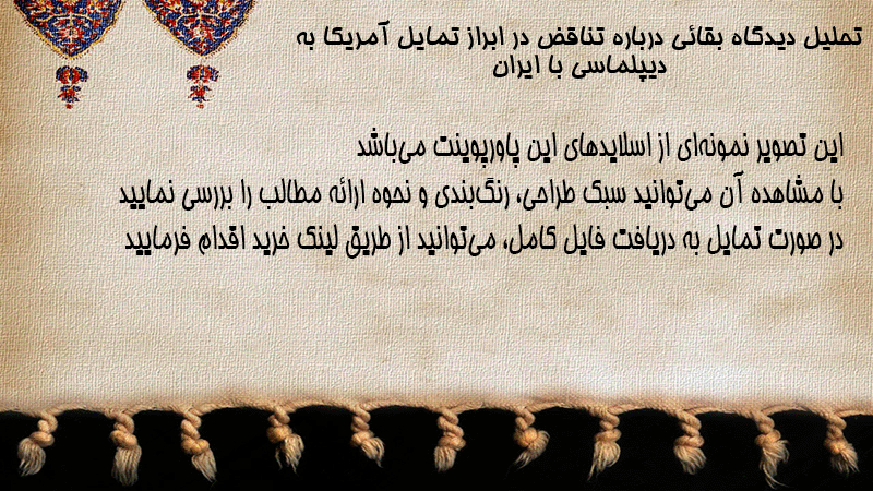 پاورپوینت کامل تحلیل دیدگاه بقائی درباره تناقض در ابراز تمایل آمریکا به دیپلماسی با ایران
