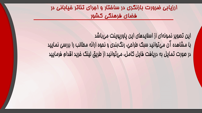 پاورپوینت کامل ارزیابی ضرورت بازنگری در ساختار و اجرای تئاتر خیابانی در فضای فرهنگی کشور