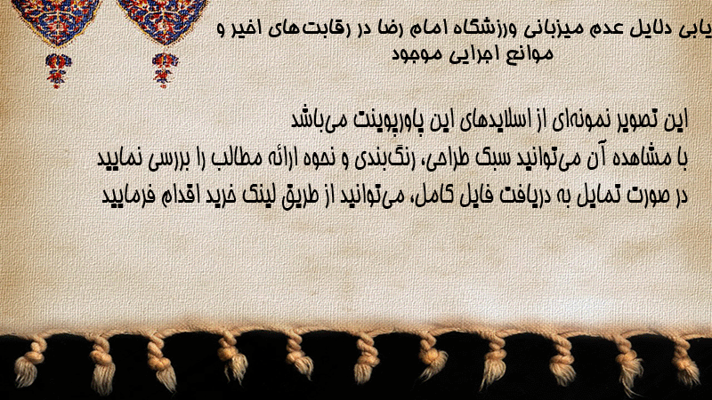 پاورپوینت کامل ارزیابی دلایل عدم میزبانی ورزشگاه امام رضا در رقابتهای اخیر و موانع اجرایی موجود